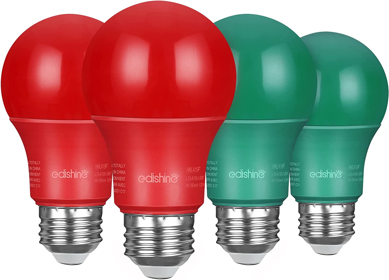 4 Pack Red Green Light Bulbs A19 Led Led Light Bulb 60w Equivalent E26 Medium Base 9w Red Lights For Bedroom Christmas Decoration Porch Garden Home Lighting Non Dimmable Ul Listed Walmart Com