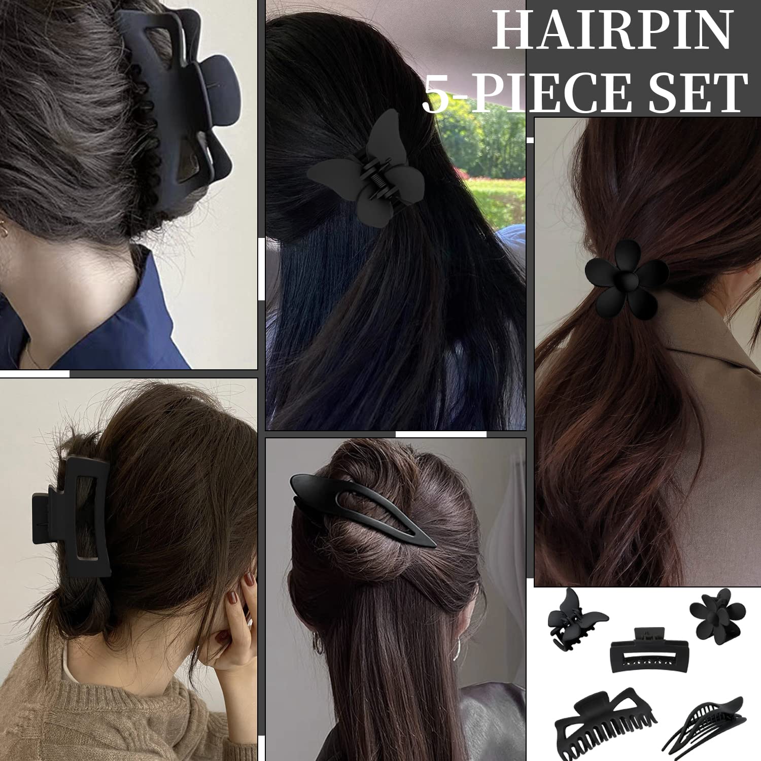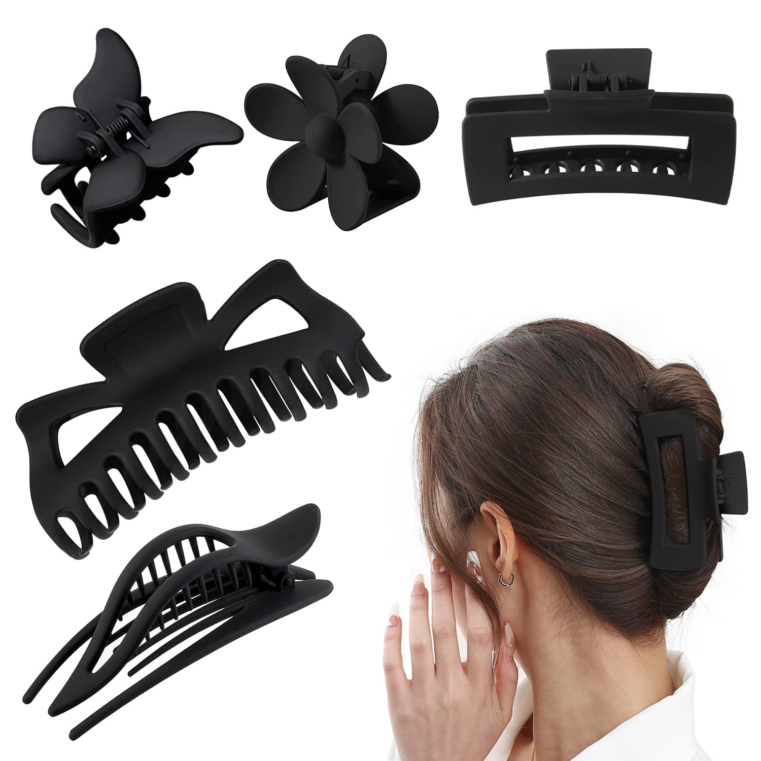 Large Hair Clips Hair Clip Pack Of 5 Hair Clips Women S Hair Clip For Women Girls Thick Thin Long Hair Black Amazon De Beauty